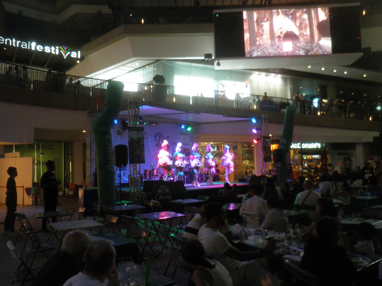 パタヤのビーチロードとセントラルロードの交差するあたりにあるセントラルフェスティバルというショッピングモールに行きました。 大きなショッピングモールで、ソンテウで簡単にアクセスできました。 屋外のフードコートが気持ちいいです。訪れたときは、アイドルショーをやっていました。