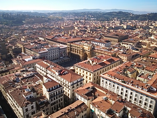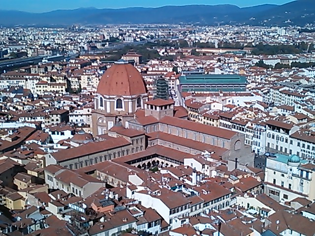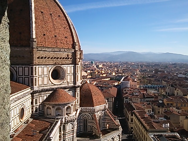 上のテラスからの眺めは最高でした。オレンジ色の屋根。ドゥオモのクーポラ、ウフィッツィ美術館、サンタクローチェ教会など360度の景色でした。