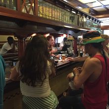 入り口付近はカウンターとライブを聴きたい人のスタンディング。
