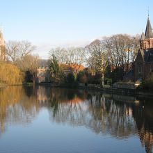 歩いていてとても気持ちいい景色です。空気が澄んでいる。水辺に映る建物がいい感じ。夜のライトアップはちょっと暗いですが、これはこれでいい味出してます。橋の上からの写真が絶景スポット。冬でもそんなに寒々しい感じではなかったです。