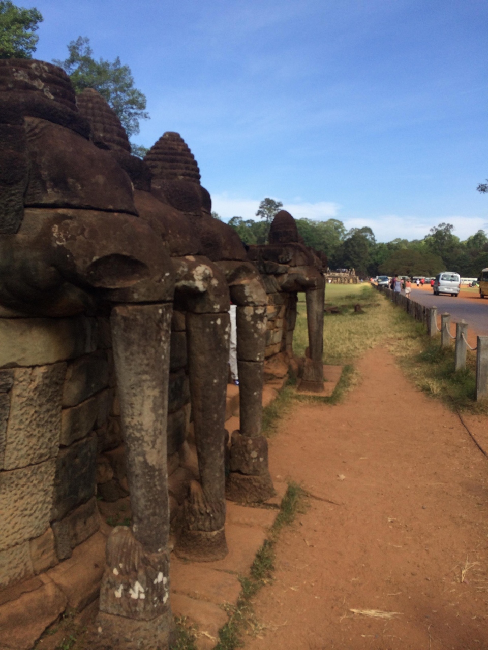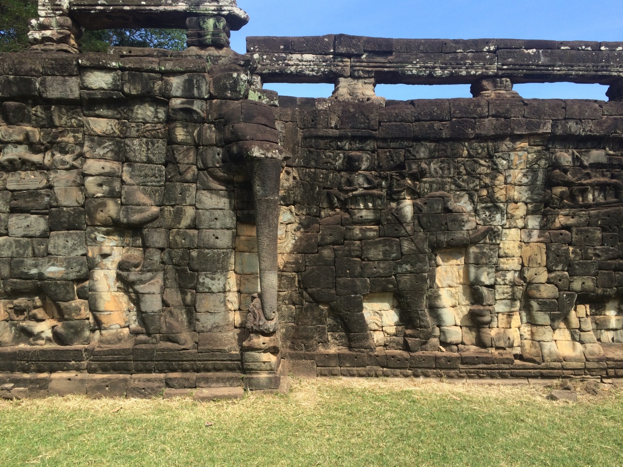 約300メートルにわたって壁面に延々と象のレリーフが彫られており壮観です。また、階段の両脇には見事な象の鼻の形をした柱もあります。さまざまな式典や祭祀を行なう場所だったそうで、勝利した軍が王様と謁見したりもしたそうです。