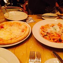 パスタには、店員さんがテーブルでチーズをたっぷりかけてくれました。