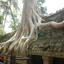 アンコールトムの東側にある古い仏教寺院です。この寺院は、彫刻よりも、むしろ建物と一体化した榕樹(ようじゅ)で知られています。