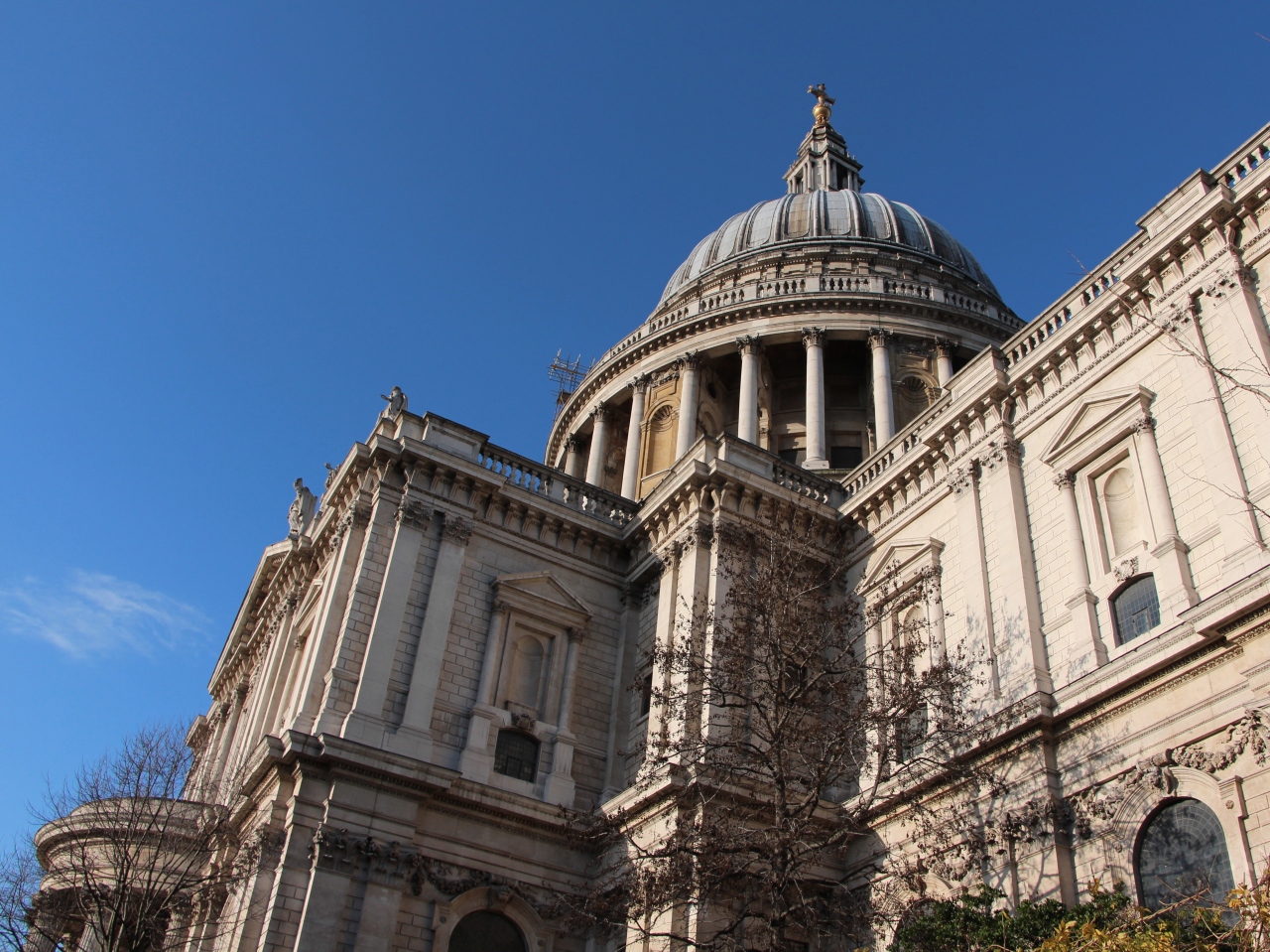 セント・ポール大聖堂は大聖堂の下から眺めても、円形のドームの形はなかなか綺麗には見えない。