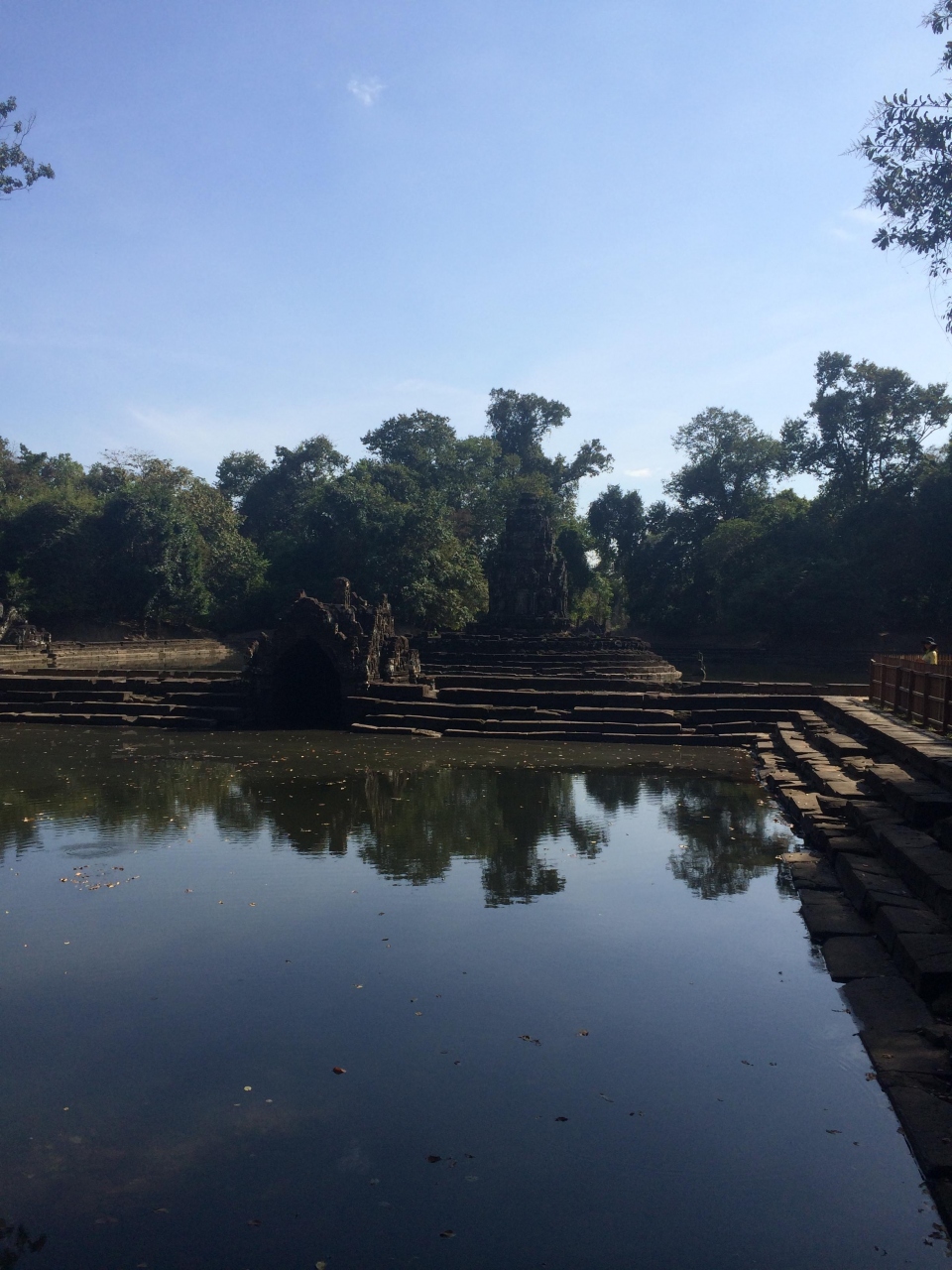 道路でトゥクトゥクを降りてから大きな池に架かった橋を延々と歩いて行かなければなりません。遺跡自体も小さな池に浮かぶように造られており、他の遺跡とはちょっと雰囲気が異なります。観光客が入れるのは一部のみで、ヴァラーハ像も遠目にしか観れなかったです。