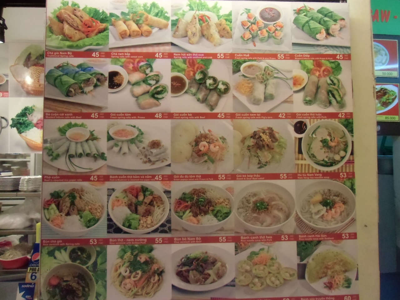 ドンコイ通り沿いにあるパークソン百貨店4階にあるフードコートは、お店の種類も20店舗以上あり、ベトナム料理はもちろんのこと、他の東南アジアの料理も多くあり、また値段も安くてお勧めです。ベビーチェアの貸し出しもあります。お店の壁に写真と番号と価格の載ったものが掲示してあるので、言葉が通じなくても安心して注文できます。注文後は席で待っていれば、係りの人が運んで来てくれます。