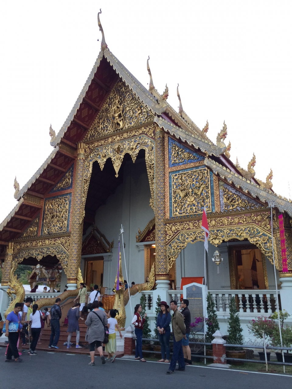 チェンマイのシンボル的な寺院、ワットプラシン。他のどの寺院よりも大勢の観光客で賑わっていました。この日は日曜日だったので、ターペー門から寺院の前まで続く道でサンデーマーケットが開かれていました。お店の数と人の多さに圧倒されました。