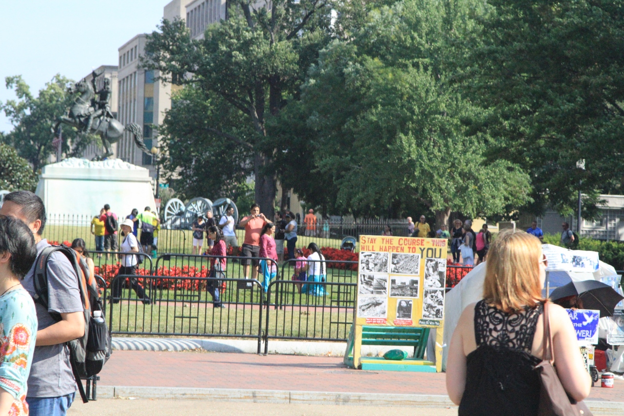 夜と昼にホワイトハウスを観光したが、ここに来ると世界の中心に来たと錯覚してしまう。ホワイトハウスの前では、いくつかの抗議活動が行われていたが、警官も警備はするものの逮捕はしない。当たり前なのだが、言動の自由が許されている国の素晴らしさを感じさせる瞬間である。