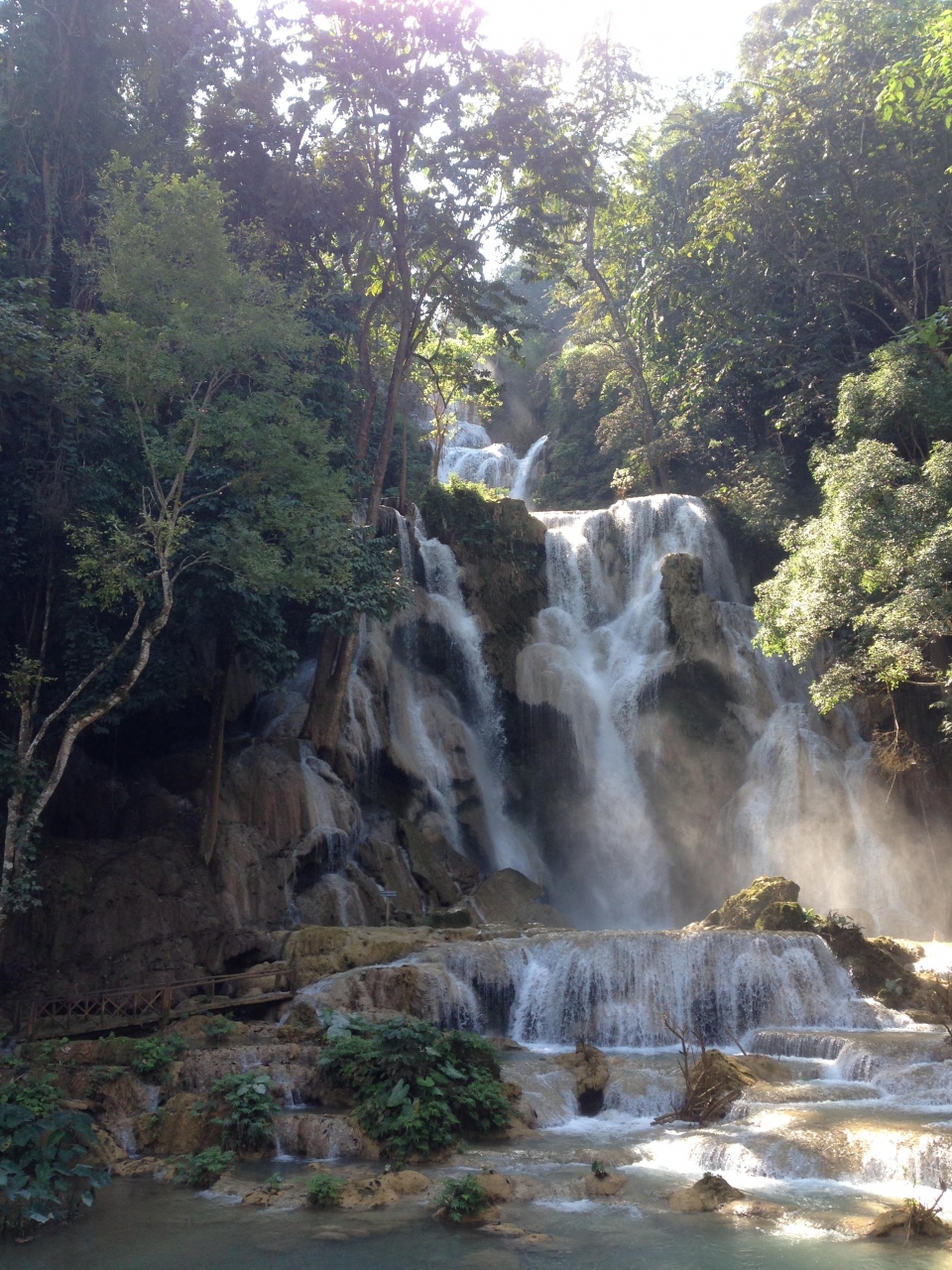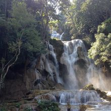 ルアンパバーンの町から車で30分。旅行会社でツアー(50,000kip)を扱っています。山道を行くと、入口のところに飲食店・お土産物店が並んでいます。