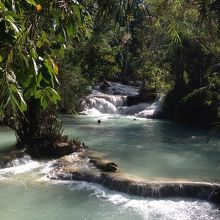 石灰分が多く、滝壺から200mくらいは鍾乳洞にあるような石灰棚が続いています。自然保護という観念があまり無いのか、自由に泳いてよいことになっており、着替える場所もあります。各棚は水が落ちる処は結構深く、意外に水温が低いです。