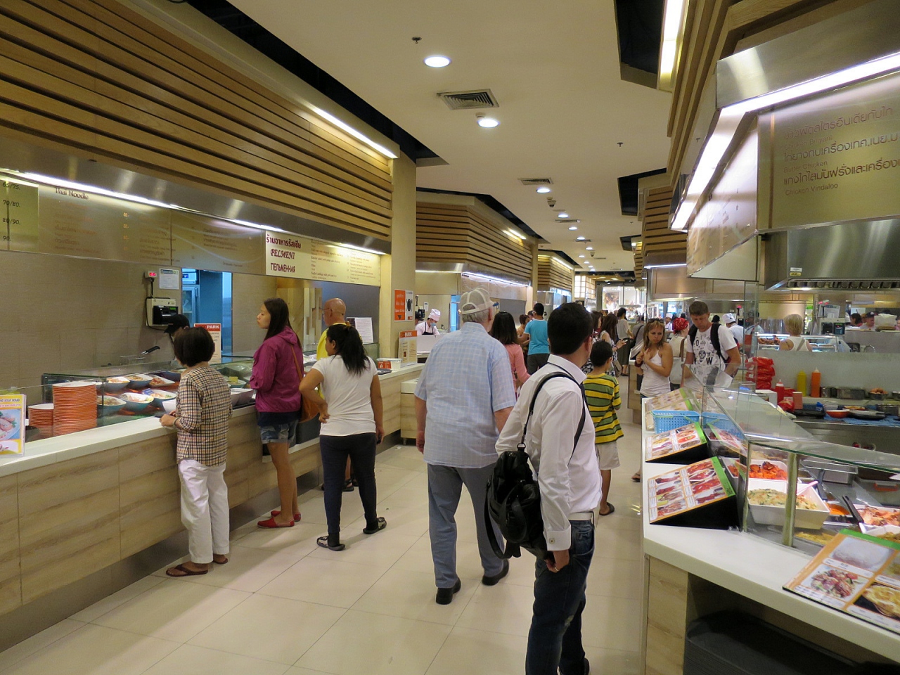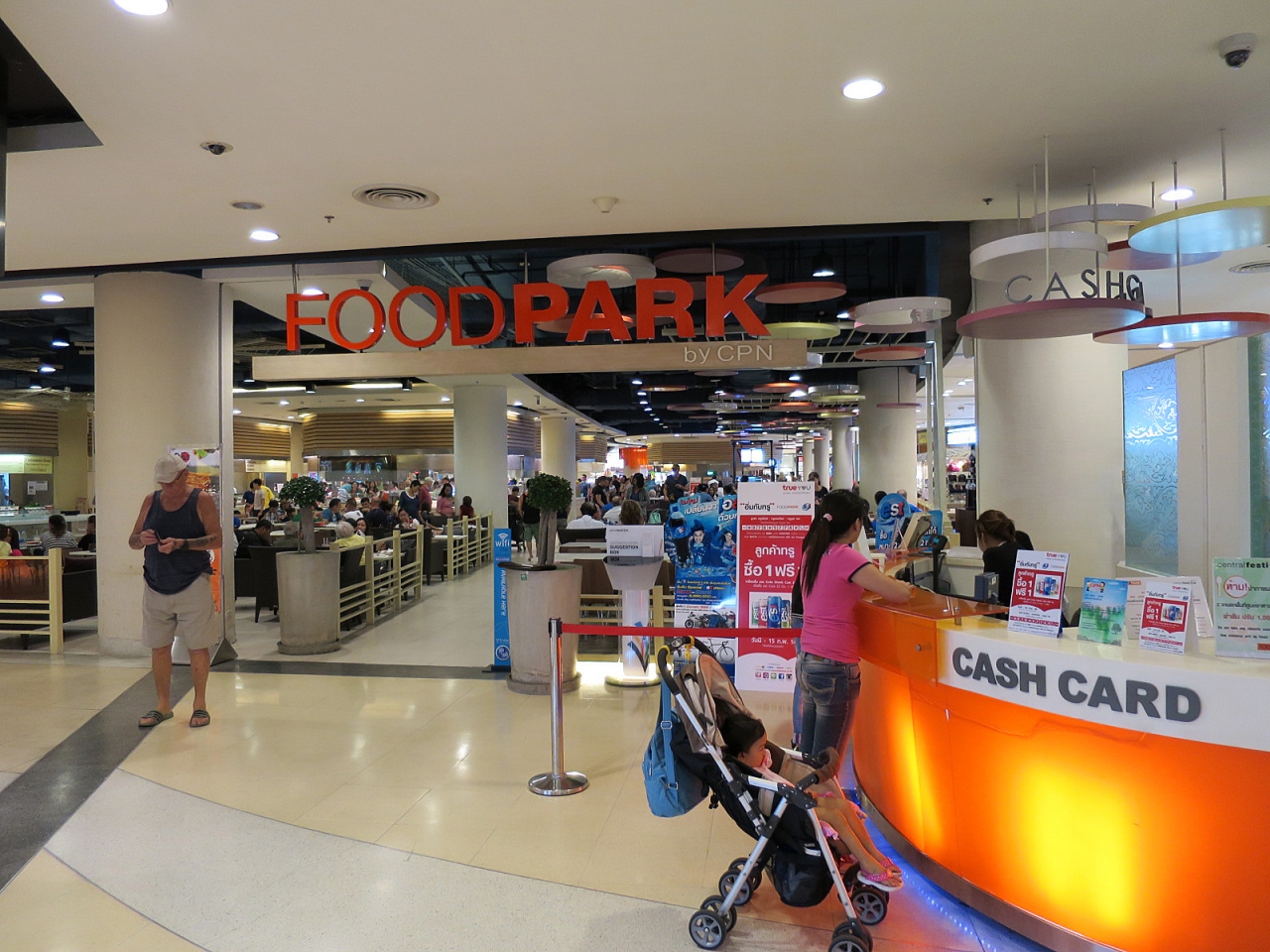 「セントラルフェスティバル・パタヤ」のグラウンドフロアにあるフードコートです。言葉が分からなくても気軽に食事ができるという点でフードコートは便利ですが、このフードコートは「セントラルフェスティバル・パタヤ」内という便こともあって大変綺麗ですし、大きさもパタヤ最大級、さらに西洋料理・日本料理(なんちゃって系ですが…)など外国料理が充実していて、外国人観光客にとても人気があります。もちろん、料理の値段も外国人観光客向けに設定されてはいますから、フードコートの形態をとったレストランといったような感じでしょうか…。