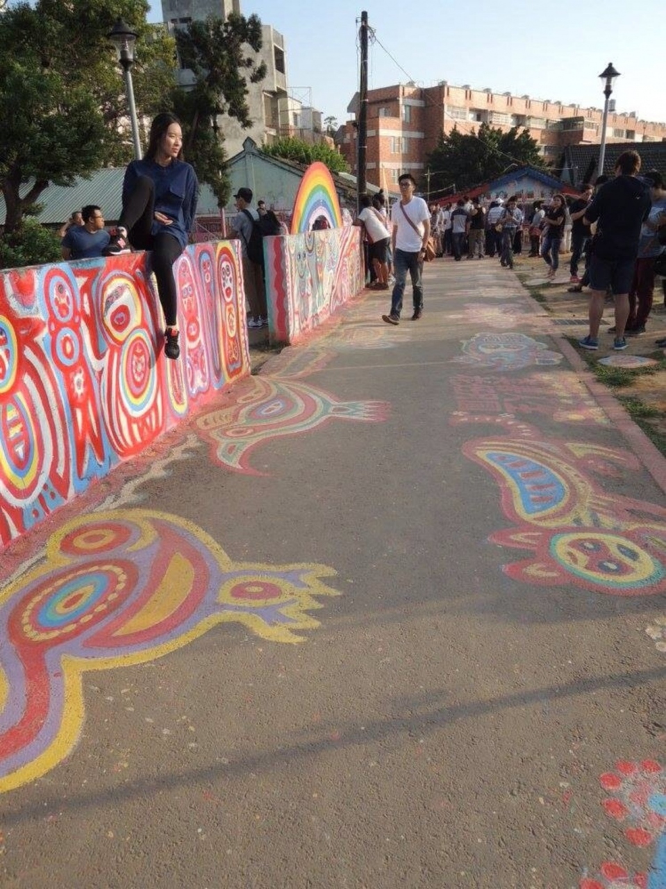 お昼過ぎに台北を出て新幹線で台中まで行ってきました。高鐵台中駅からはタクシーを使うのが無難です。15時くらいに着きましたが沢山の観光客で賑わってました。台湾国内から来てる人が多かったです。絵が描かれてる場所はそこまで広くないので午後から台北を出発しても充分見て回れます。近くの大学前から台中駅(台中火車駅)に行くバスがでてますが新幹線の台中駅とは異なりますので、要注意。