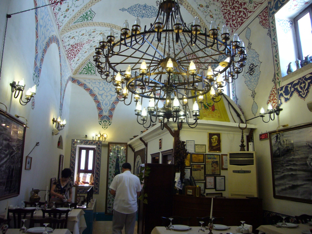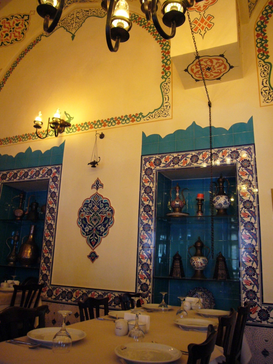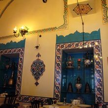 スパイスバザールの入り口付近に位置するレストランです。階段を上って店内に入っていきます。壁には絨毯が飾られていたり、シャンデリアがあったり、壁に鮮やかな装飾が程っこされていて非常にオシャレです。また、窓から下のバザールのにぎわいを見下ろせるのも印象的でした。
