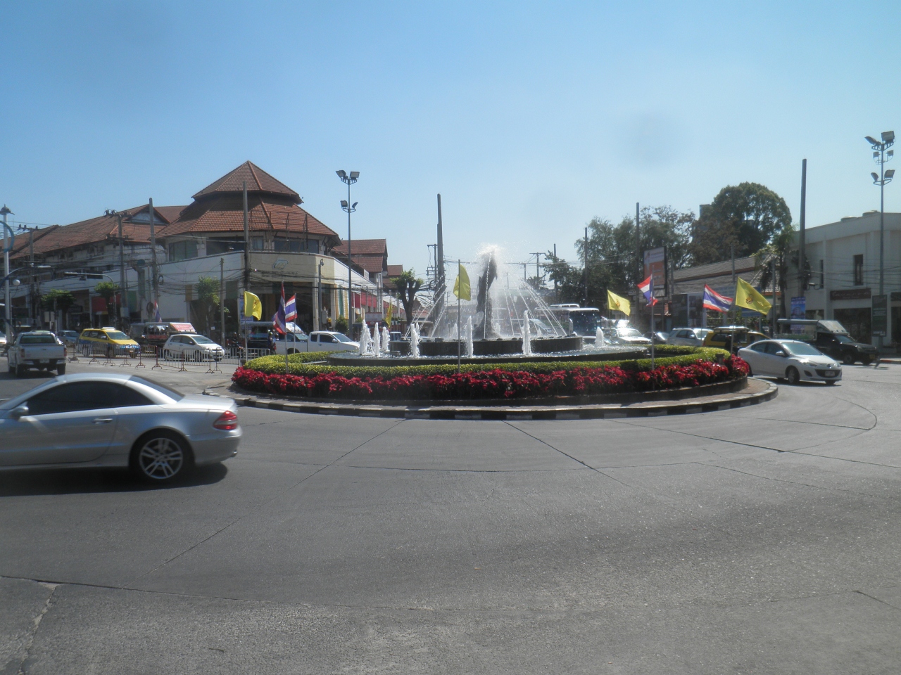 このドルフィンサークルのロータリーは、5本の道が分岐していて、すぐ近くで分岐する小道もいくつかあって複雑なところです。そのわりには標識も少なくわかりにくいです。 このロータリーから分岐する道の一つに北バスターミナルのソンテウが待機していて、客があつまると出発します。運賃は20バーツでした。