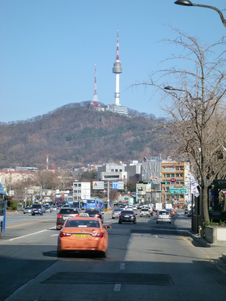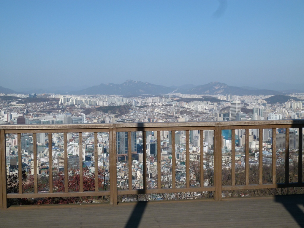 シティバスに乗ってソウル市内を観光しました。日没に間に合うようにNソウルタワーを訪問。途中まではバスで行くことはできますが、そこからは急な坂道が続き徒歩で頂上へ行くのはちょっと大変ですごい人混みでした。南山頂上に到着すると、チケット売り場も長蛇の列。ここでは順序良くとはいきませんね。確かに展望台からの眺めはいいのですが、上海ヒルズや上海外灘(バンド)の迫力さに比べると、ちょっと物足りなさを感じました。また1階のフードコートでいただいたハンバーガーとポテトは美味しかったのですが、客席はガタガタ揺れて座り難く長居は禁物でした。