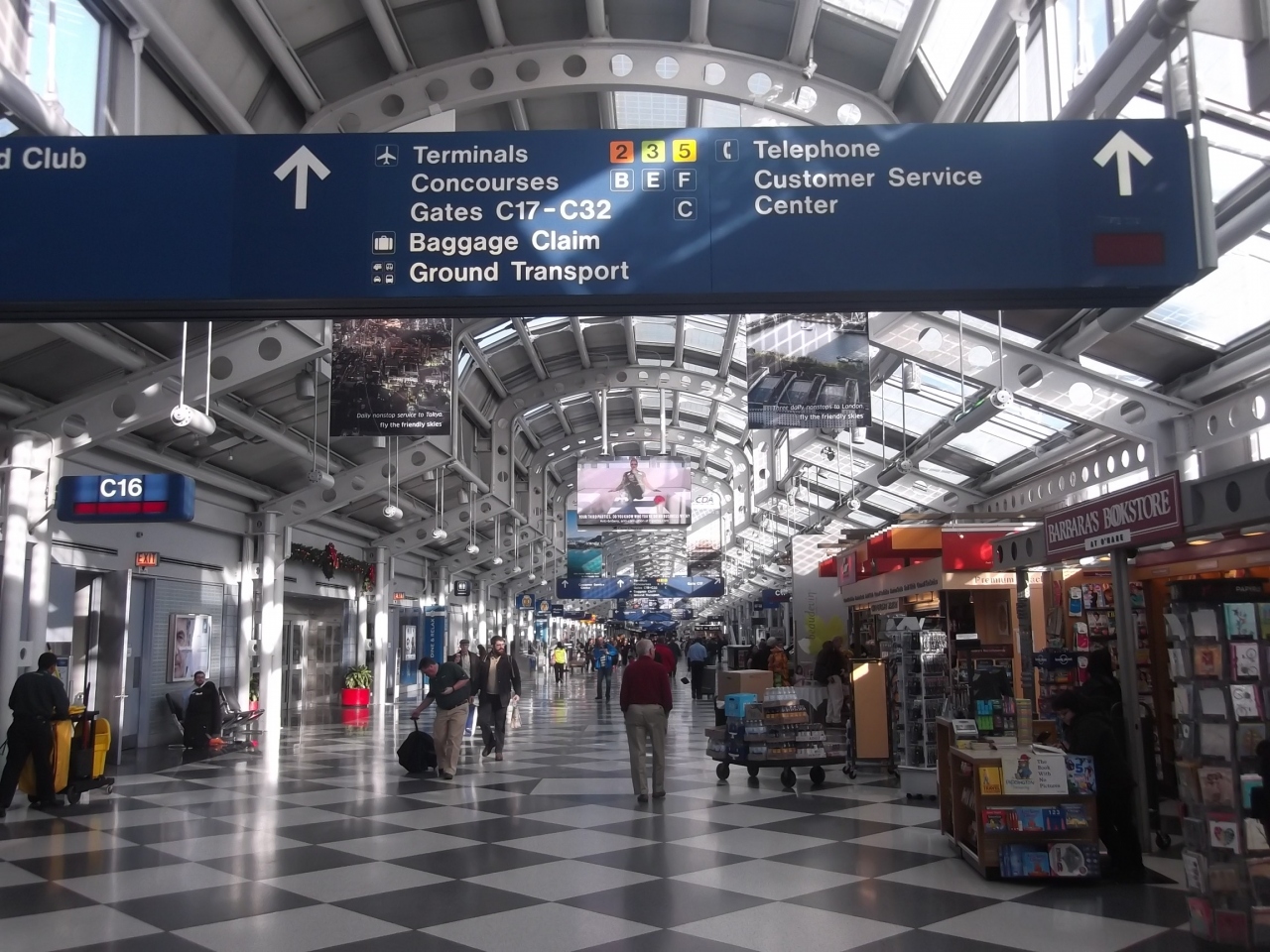 滑走路が8本もある巨大空港です。ターミナルは4っつ。国際線到着は入国管理施設がターミナル5にしかないので、必ずターミナル5に到着します。ゲートへの通路が広く、個人的には好きな空港です。よって通路の両側にいろんなお店が並んでいます。