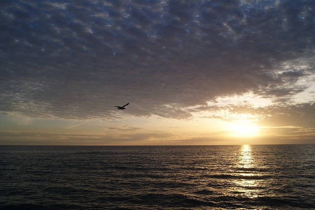 日本の太平洋側に暮らしていると、海に沈む夕日を見る機会があまりないので、良かったです。