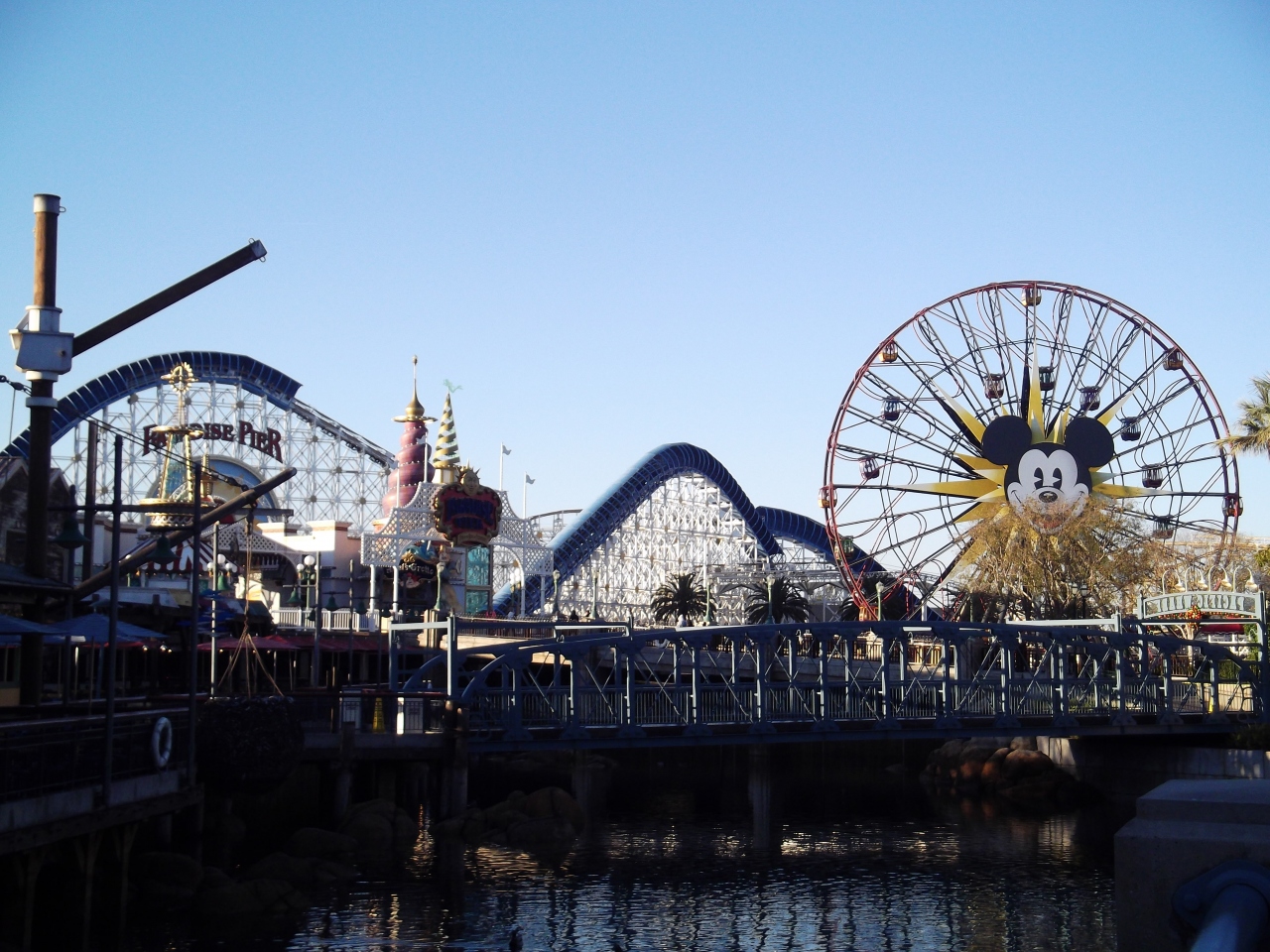 カルフォルニアアドベンチャーの象徴である観覧車です。ワールドオブカラーの時には、観覧車の中心部分に絵が映し出される効果もあります。ジェットコースターと同様に、2つのパークやアメリカの広大な大地が一望できます。