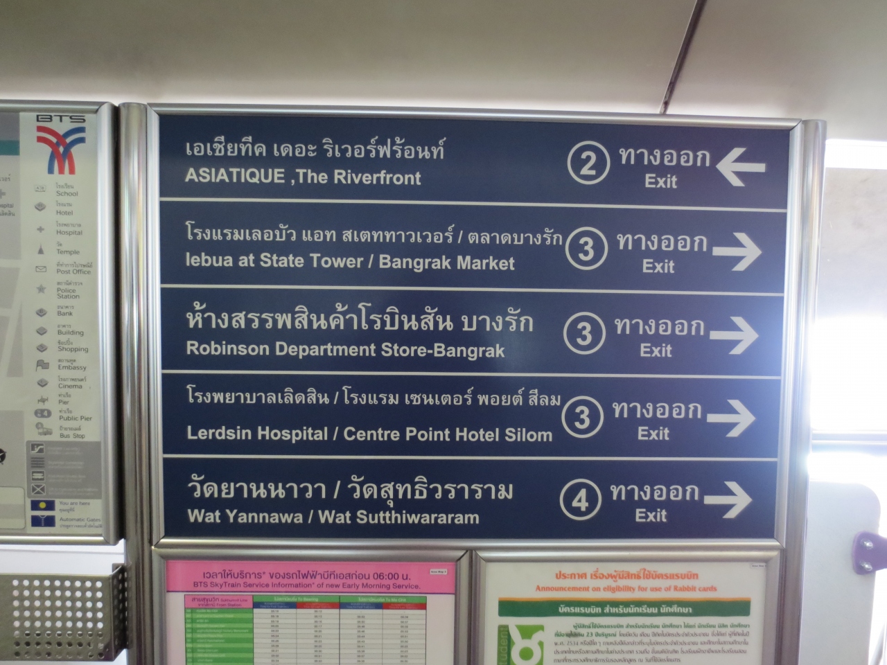 シーロム線のタクシン駅は、降り口番号に周辺の観光地などが記載された案内看板などがあり便利でした。それを頼りにおりますとすぐにロビンソンデパートにたどり着き、とてもよかったと思います。露店などが多く、庶民的な街でした。チャオプラヤー川の船着き場が徒歩圏内で船のアクセスも可能です。
