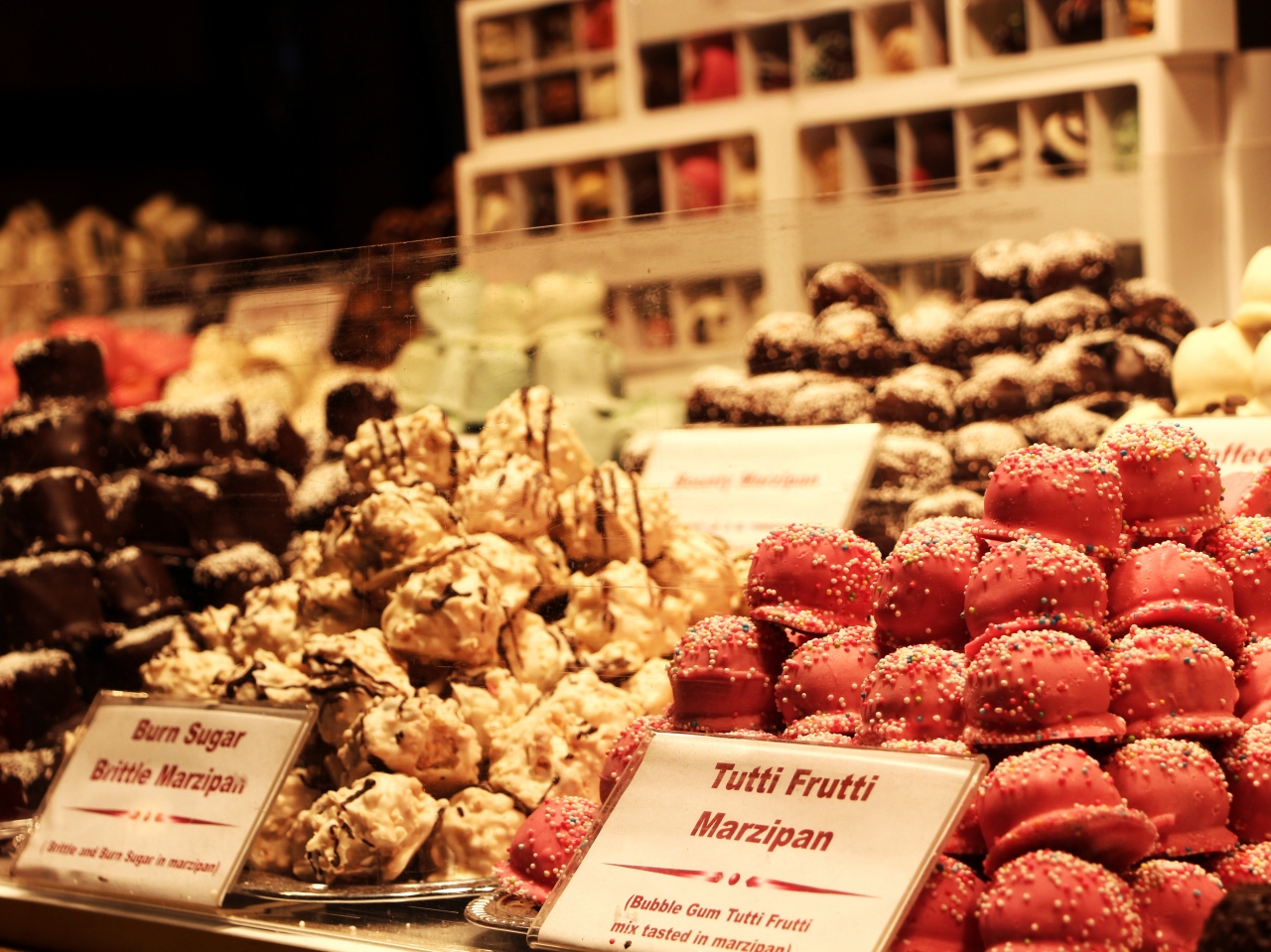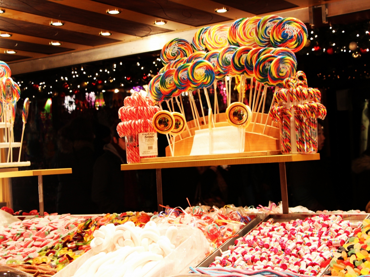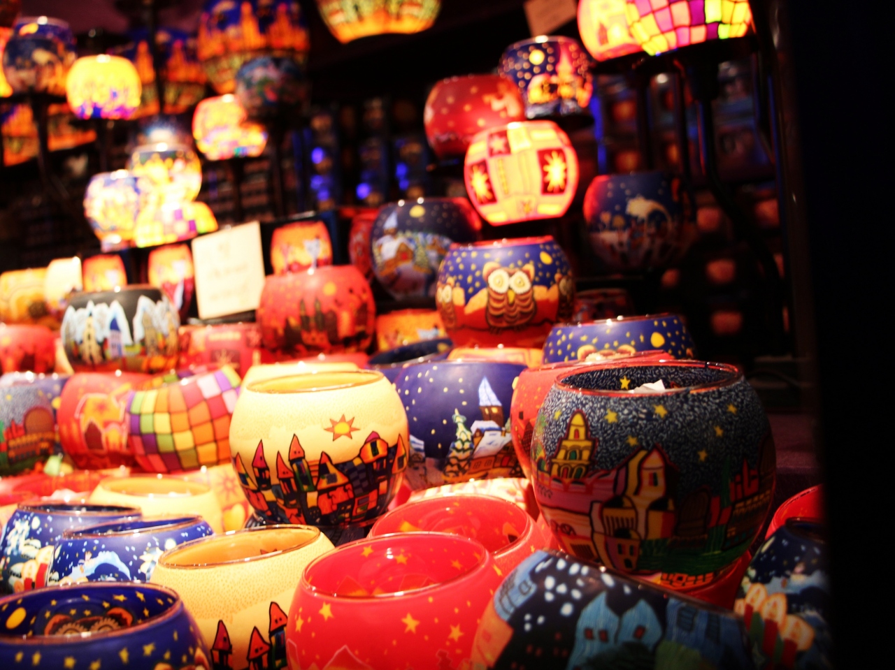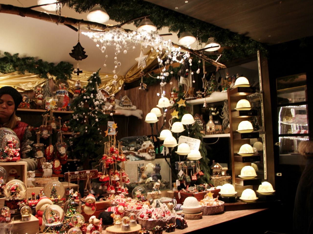 各国のクリスマスのオーナメントや可愛らしいお菓子、スパイスの効いたホットワイン等クリスマス気分を盛り上げてくれる屋台と優しい色の電飾が目の前に広がる。