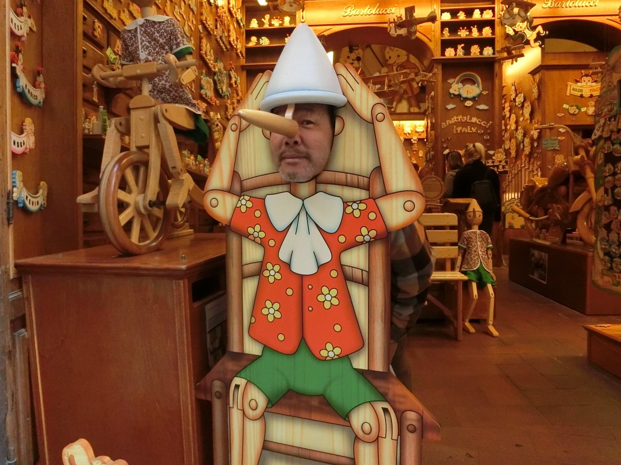 ピノキオ人形に顔をつけて、いい歳して撮っていたら、