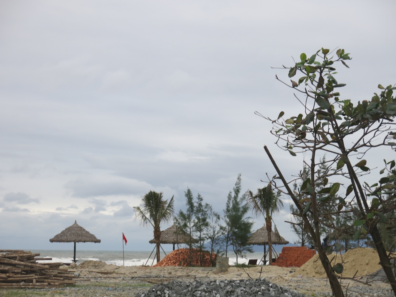オフシーズンに行ったので、ハイシーズンに向けてあらゆる施設が工事中でした。サイクリングをする人がまばらにいるものの、波がかなり高く、砂浜ビーチまでは近づけませんでした。ホイアンの旧市街からは5キロほどの距離でした。