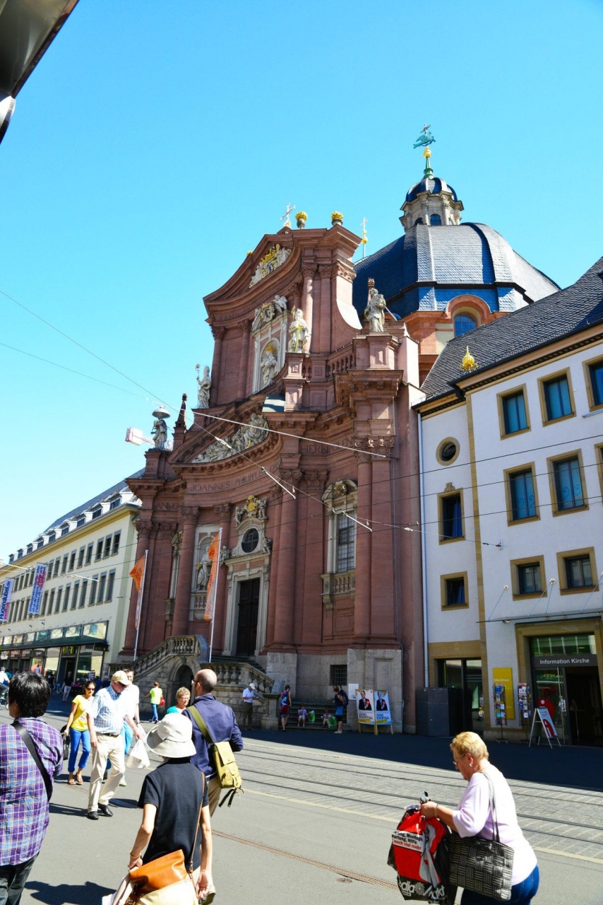 バロック様式による教会です。赤い砂岩で造られたファサードが印象的ですが、立派な教会にもかかわらず、左右両側に普通の家が教会にくっつくようにして建っており、とても窮屈そうでした。教会の全容もわかりません。