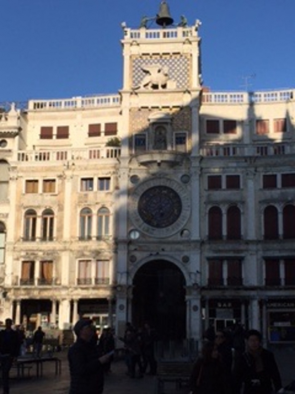 サンマルコ広場にあるので、サンマルコ寺院やドゥカーレ宮殿、鐘楼などの建物の陰に隠れがちですが、見所は満載です。特に文字盤は24時間で、星座になっています。この建物の下を通ると、ベネツィアらしい路地に沢山のお店があるなど、ショッピング街へのゲートにもなっています。