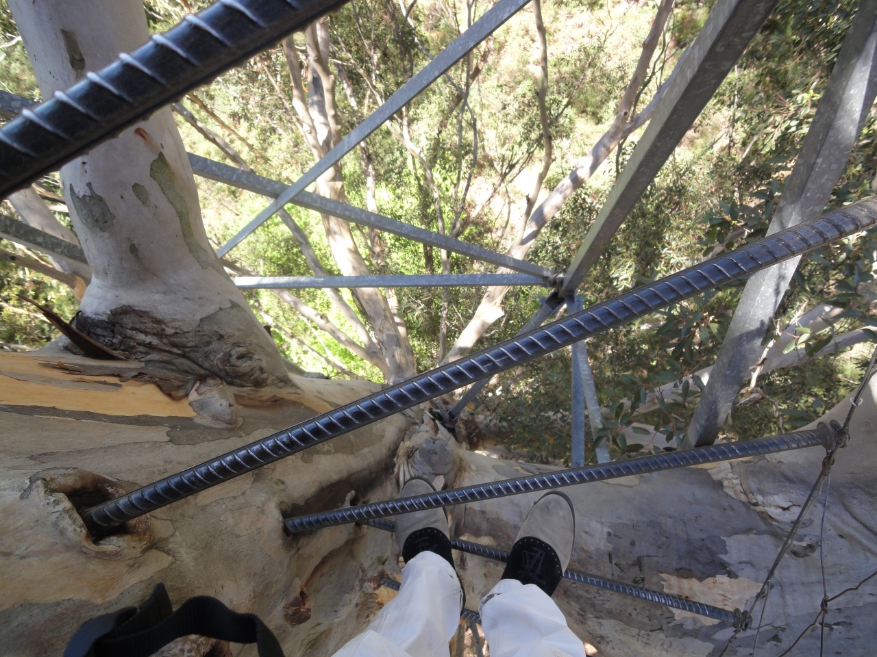 ワイナリー訪問を目的に、レンタカーで南オーストラリアを旅している途中にあった国立公園です。森の中に高い木々があり、その中の太い木に直径3cmぐらいの鉄の棒が、等間隔に突き刺さってあり、はしごのように上っていきます。ワインでほろ酔い気分(運転は、飲めない家内です。)でしたが、上る際は個人の自己責任であるというボードがあります。女性(オージー?!)も上っていくので、ここは日本男児としては頑張って勇気を示す必要があります!鉄棒の間隔がちょっと広めで、エイエイと登ります。途中まで行くと慣れてきますが、最初の10mまでは引き返そうかと迷いも生じたりします。しかし、頂上のスペースからの眺めは、森の木々が広く続いており、最高ですよ!