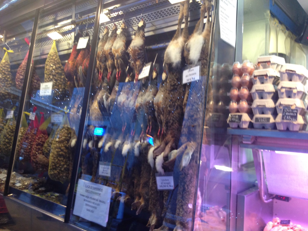 果物、肉、お菓子、スペイン料理の屋台などが所狭しと並んでおり、日本では見ない珍しいものも多くとても楽しかったです。カットフルーツやフレッシュジュースが1ユーロから売られており旅行中不足しがちなビタミンの補給が出来ました。他にも様々な種類の生ハムが食べやすく串に刺されて売られていたりと、食べ歩きも楽しめました。しかも安い!!パエリヤがとても美味しかったです。