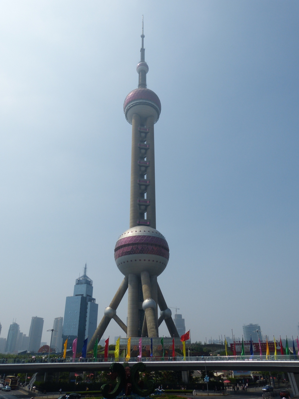 この円形歩道橋からは東方明珠塔や高層ビル群がきれいに見えるので、観光客がたくさんいて記念撮影も大変。