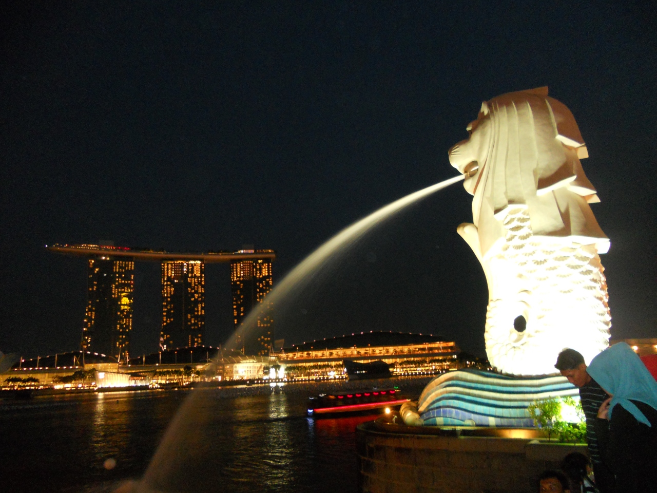 クラーク・キーで食事をした後、徒歩でマリーナ・ベイへ向かって歩き、15分ほどで着きました。シンガポール観光でははずせない「マーライオン」がいる公園です。20年ほど前に訪問した際は何もなかった場所なのに・・少し大きなマーライオンが元気に水を噴き出しています。こちらからはマリーナ・ベイを一望でき、マリーナベイ・サンズも綺麗に撮影できることもあって、とにかく人であふれています。今回は夜しか行けませんでしたが、次は朝早い時間に行ってゆっくり写真撮影したいです。