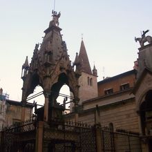 見た目とても豪華で、装飾も素晴らしかったので、何かと思っていたら、ガイドさんが説明をしてくれ、これはスカラ家の紋章を形取った鉄の柵で囲まれいる、マスティーノ2世の廟ということがわかりました。