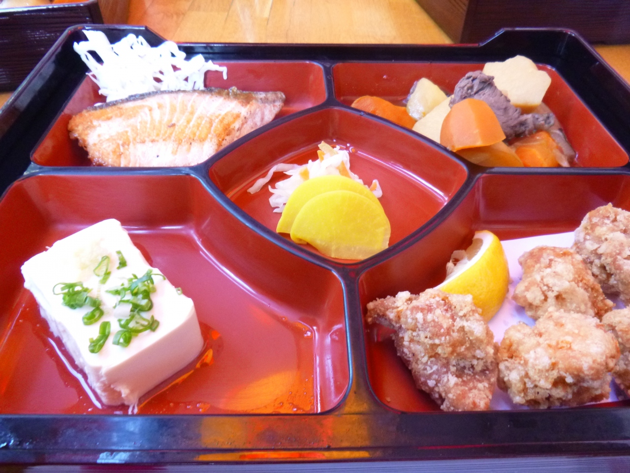 イスティクラール通りから少し入った所にある和食レストラン。ツアーで利用しましたが、地元の人もけっこう来ていました。寿司カウンターもあったので期待しましたが、ツアーで食べたのはお弁当。サケのソテー、鶏の唐揚、筑前煮、冷奴とご飯に沢庵、お味噌汁といったメニューで味はまぁ普通でした。ツアー最終日だったので久々の和食、お醤油味にホッとはしましたが、どうせならお寿司が食べてみたかったです。