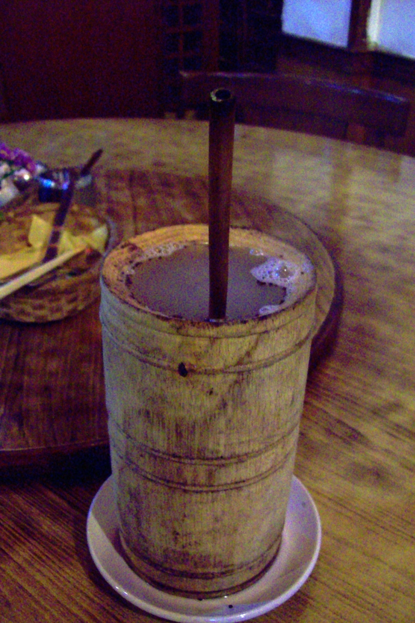 発酵させた麦を発酵させてお湯を注いでストローで飲みます。
