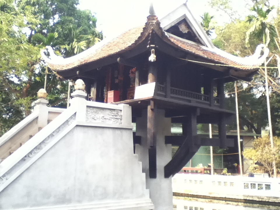 土産物屋に囲まれた小さな池の上に、名前が示す通り、一本の柱で支えられた小さなお寺が建っています。