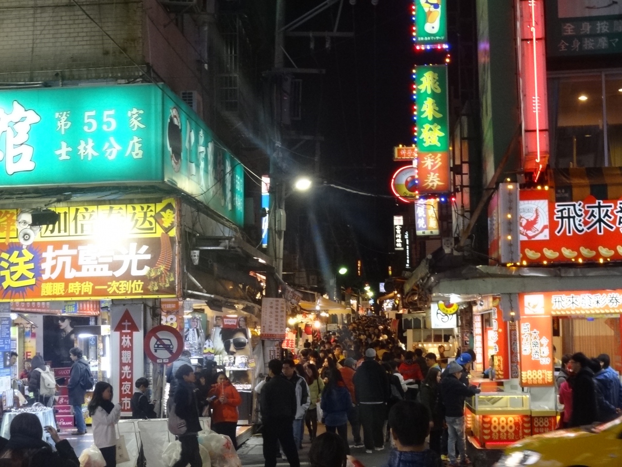 人が多く賑やかでゴチャゴチャ感があってこその夜市なのですが‥年始特別連休だったためかとにかく人の数が半端なかった。地下に美食街のある士林市場付近はまだ空いているほうで、通りは人で埋め尽くされ、前に進むのも・立ち止まってお店をみるのも一苦労‥。スマホしながらバイクに乗ってるお兄ちゃんに足轢かれるし、ちょっと嫌になってしまった。