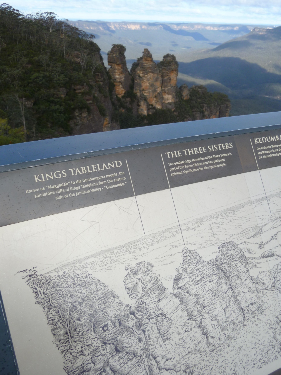 そのストーリはガイドブックに任せるとして本当に3つの立石が天高く聳え立っていてその背景はどこまでも続くユーカリの青い森に成ります。