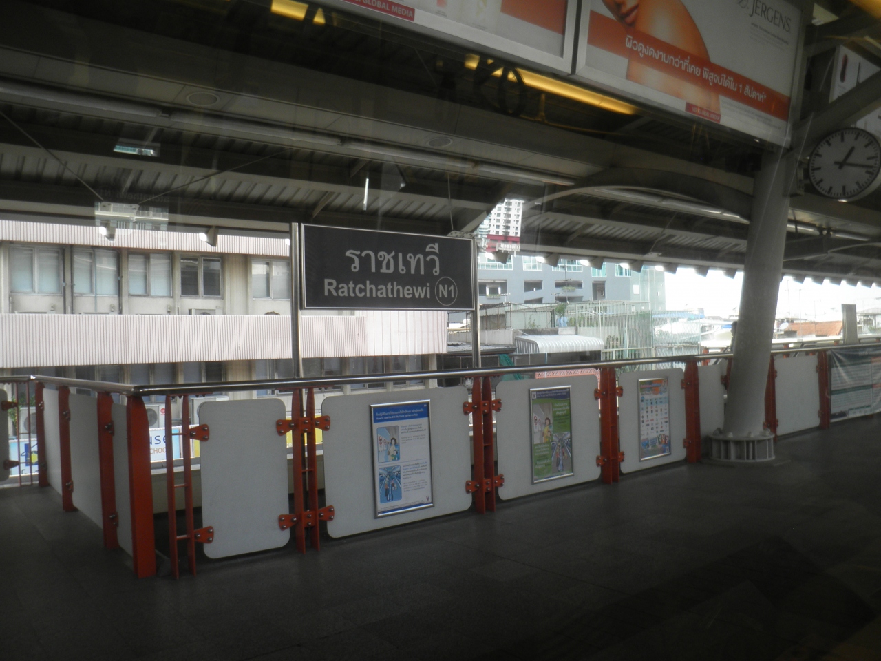 バンコク高架鉄道BTSのスクムビット線とシーロム線の乗換駅のサヤーム駅からセンセーブ運河を越えて北側の一つ隣の駅が、ラーチャテーウィー駅です。 繁華街のサヤーム駅周辺に比べると、人通りが少ないですが、そのぶん手ごろな値段で宿泊できる中級ホテルやレストランが点在します。