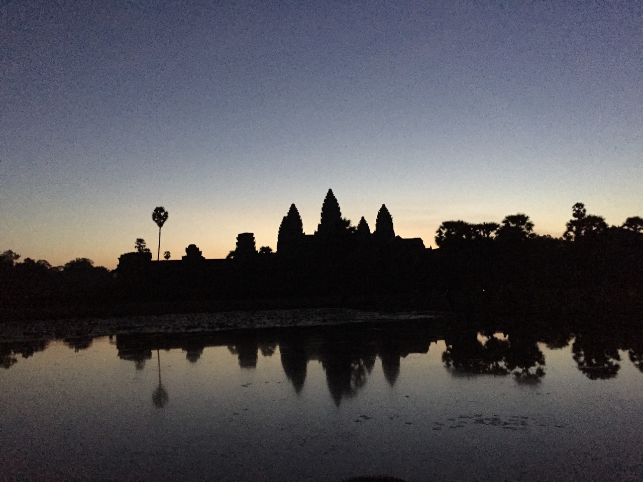朝5時30分前から、アンコールワットのサンライズを見るため、スタンバイ。日の出は6時40分くらいとのことで、少し早いかなと思いましたが、最前列は既に一杯。段々と白み始めてくると、写真では表現できない幻想的景色が現れてきました。最高でした。