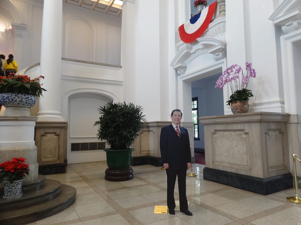 一階には様々な展示、10年近く前みた時とはずいぶん内容が変わっていました。日本統治終了後の台湾の歩みに重きをおいた内容です。総統府の建物についてと、ソウルの「青瓦台サランチェ」みたいになった歴代総統についての展示は以前より分かりやすくてとても良かった。現職の馬総統のアピール的掲示は政治的意図?うーん微妙‥。参観紀念品販売も行われていました。