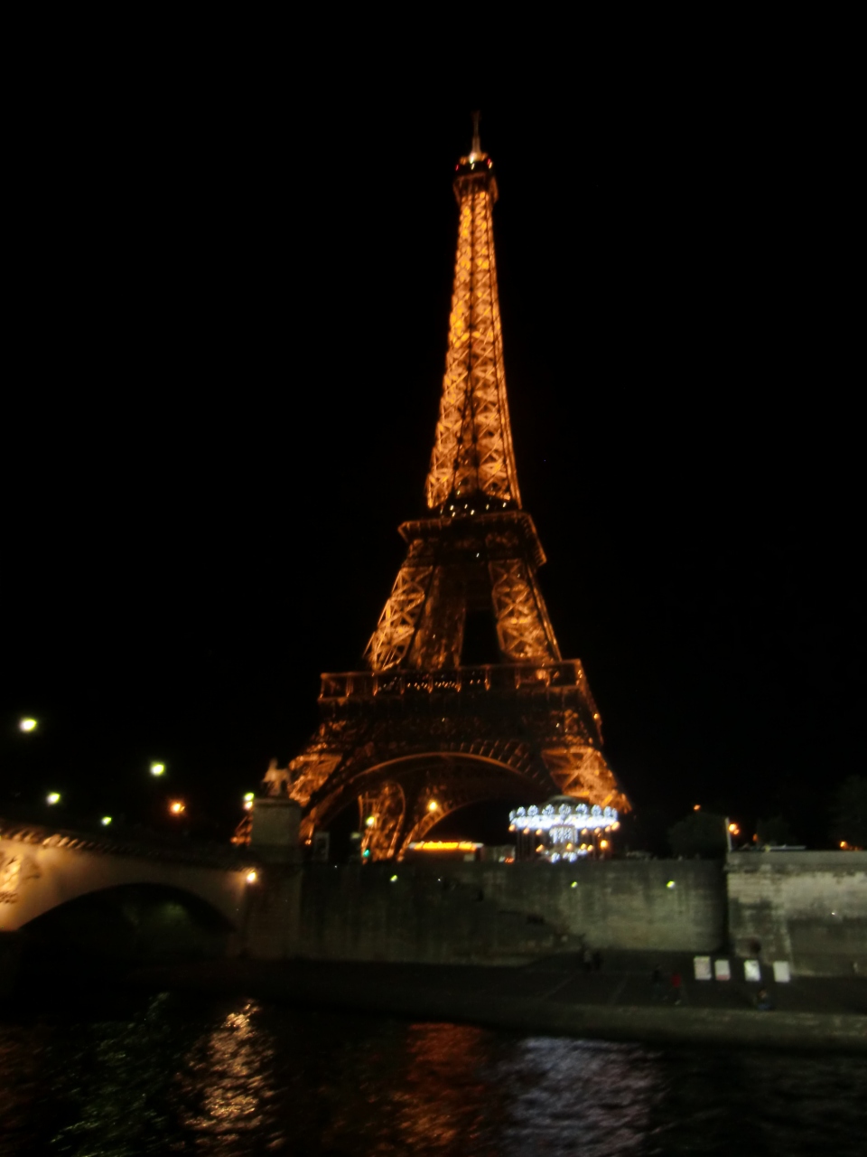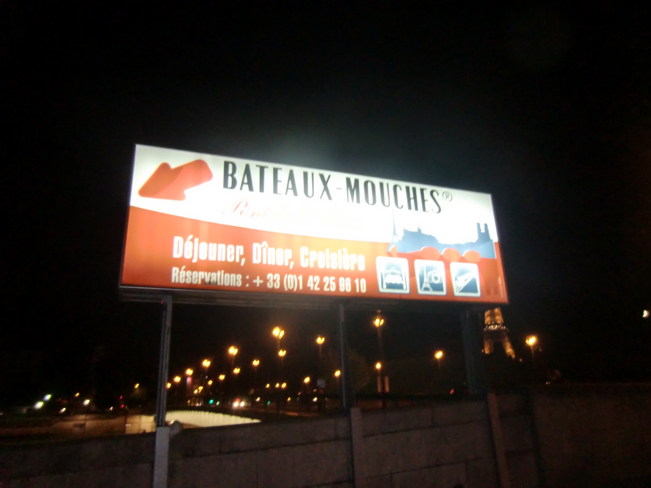 HISの個人ツアーに無料乗船券が付いていたので、夜のクルーズに行って来ました。乗船場は地下鉄のアルマ・マルソー駅から歩いて5分程度。オルセー美術館、ノートルダム寺院、エッフェル塔をまわって帰ってくる1時間強のコースです。エッフェル塔のシャンパンフラッシュも見ることができました。中国と韓国の団体ツアーコースに組み込まれているようで、日本人は少しだけ。音声アナウンスも中国語と韓国語はありましたが、日本語はありませんでした。夜景は素晴らしかったのですが、大敵は寒さ!川風がムチャクチャ冷たいです。8月なのに家内はコートを着ていました。夜のクルーズは、防寒具必須です。