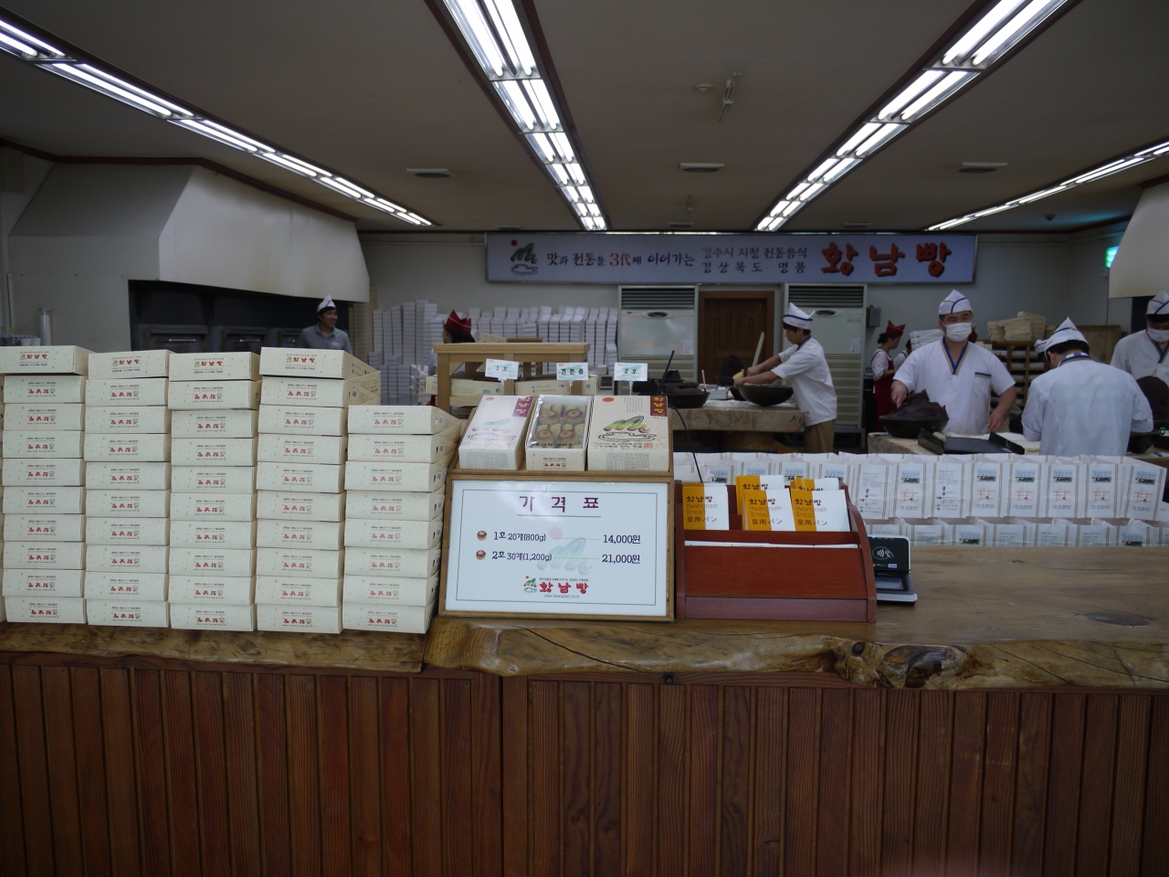 慶州に来てからずっと「皇南パン」なるものが気になっていたので入店してみた。作りたてを一つ食べて、残りをお土産にした。あんパンと言うが、こんがり焼かれた薄皮の饅頭で、あんこも上品でとても美味しかった。お土産としても喜ばれそうだ。