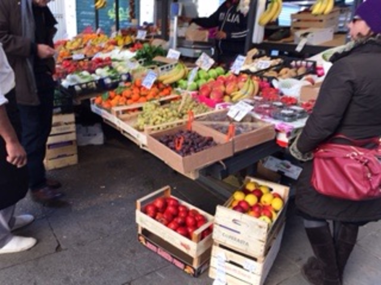 リアルト橋を渡ってすぐ近くの運河沿いにあります。魚市場に向かう途中です。色とりどりの現地の果物が売られていますので、じっくりと現地のフルーツを探したかったのですが、時間がなくて、諦めました。色が綺麗なので、写真を撮っている方も多いです。