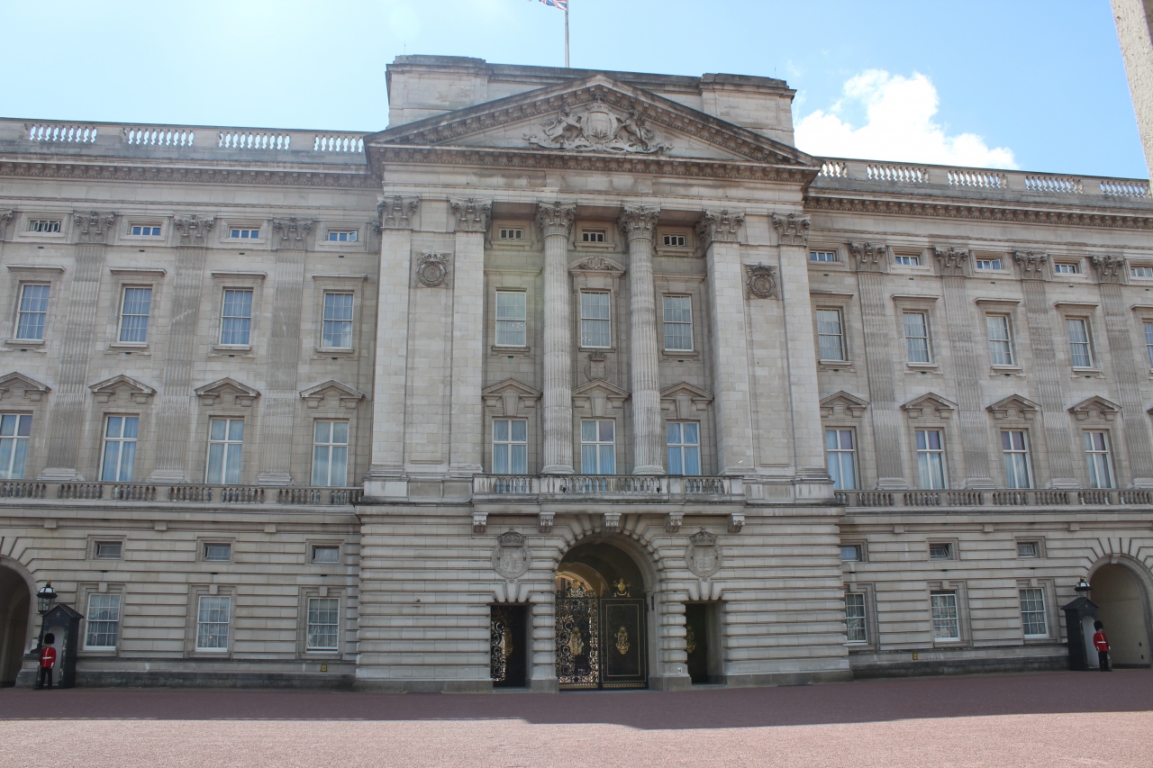ロンドンに旅行した時に訪れました。敷地内に入ることはできず柵の外から見るだけでした。さすが、イギリスらしい建物でした。オリンピック前ということもあり、観光客はたくさんいました。衛兵交代式は見れませんでしたが、門の前に衛兵さんはいました。