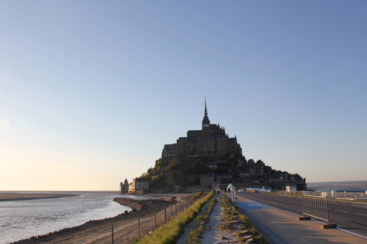 フランスに行ったときに少し足を延ばしてモンサンミッシェルまで行きました。パリからは列車を乗り継いで4時間程度かかりました。予約は前日にパリの駅にて出来ました。朝焼けも日没もライトアップもそれぞれの良さがあるので一泊することをお勧めします。