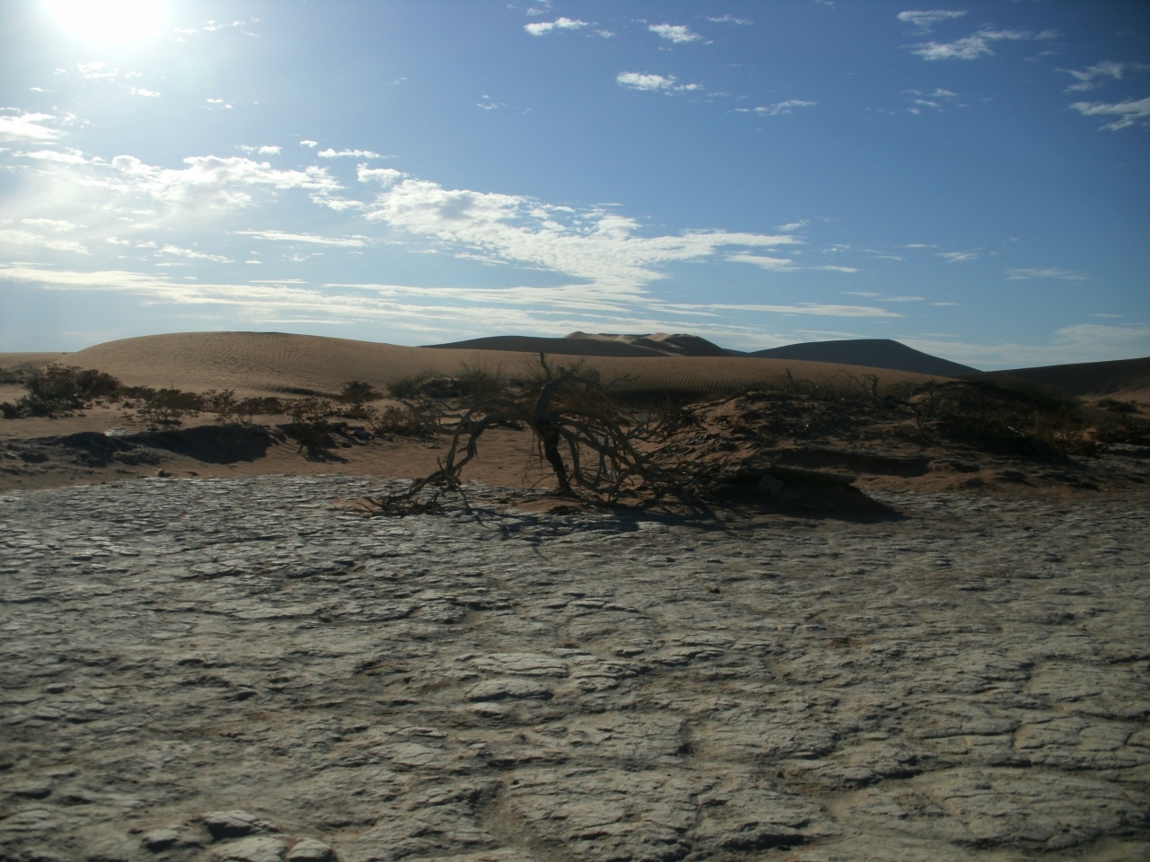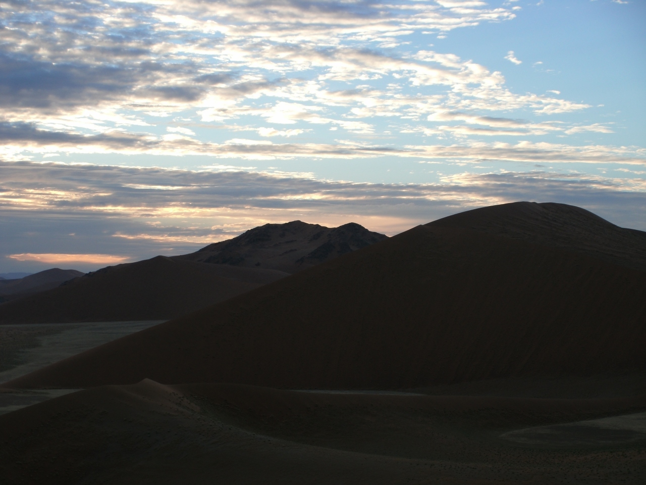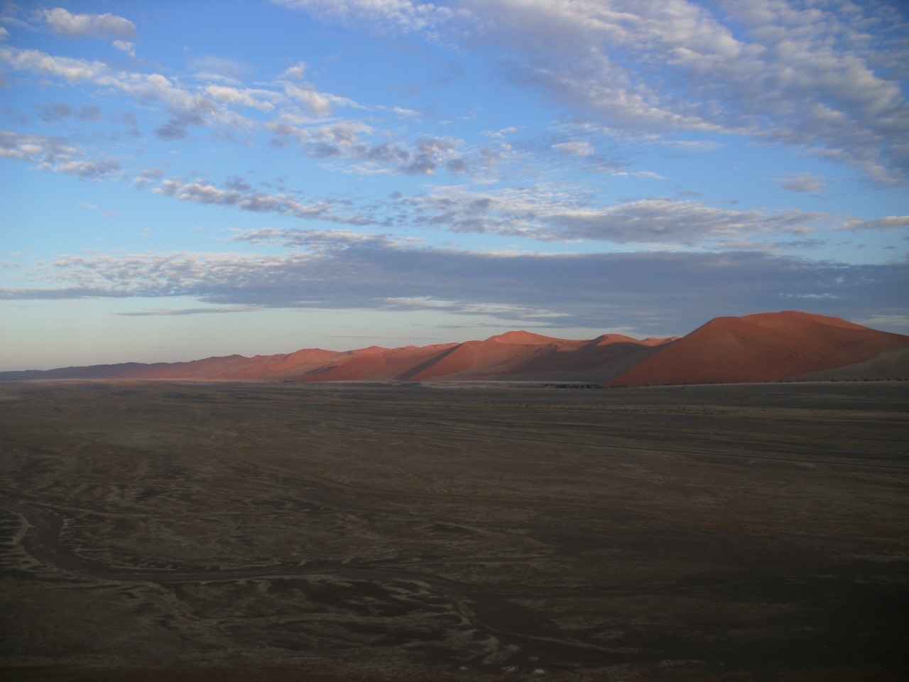ナミブとはサン族の言葉で"何もない"という意味だそうですが、本当に砂漠以外何もありません。朝日の中で赤く輝く砂漠と青い空のコントラスト、美しい風紋、サンセット、サンライズ・・・本当に美しい光景です。アクセスは悪いですが、一見の価値あります。