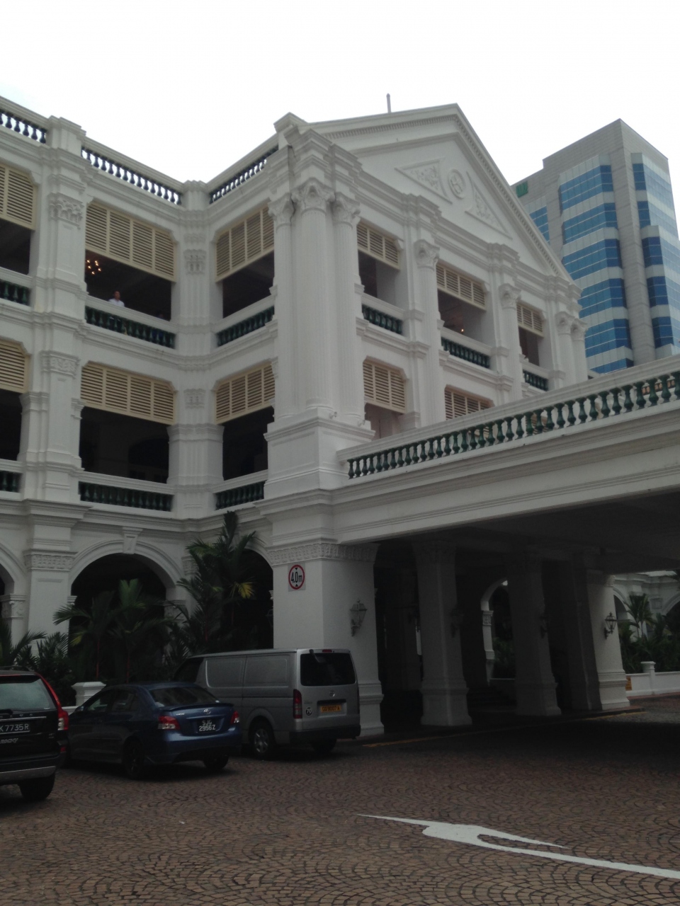 有名なラッフルズホテルに行きました。ホテル内は宿泊者しか入れませんが、敷地内のお店は利用でき買い物やカフェがあります。エレベーターが見当たらず階段で移動しました。中庭では結婚式のパーティーが開かれていました。優雅な場所です。
