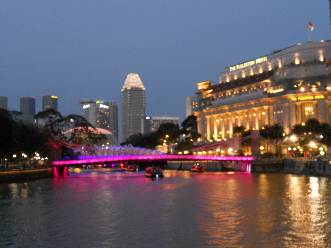 クラーク・キーのジャンボでチリクラブをいただいた後、夕暮れから川沿いをマリーナ・ベイまでずっと歩きました。水はあまり綺麗とは言えないので、夜のライトアップされた後に行かれた方が綺麗です。なお、フラトンホテルの前まで川沿いにレストランやバーが立ち並んでいますが、勧誘がとても多かったのでちょっと煩わしかったです。