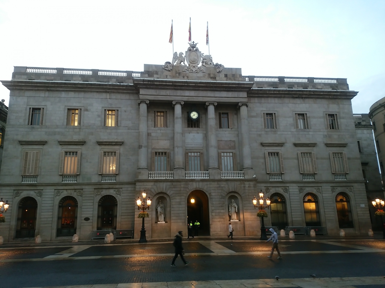 市庁舎正面には、サン・ジャウマ広場を挟んで、カタルーニャ自治政府庁が建っています。